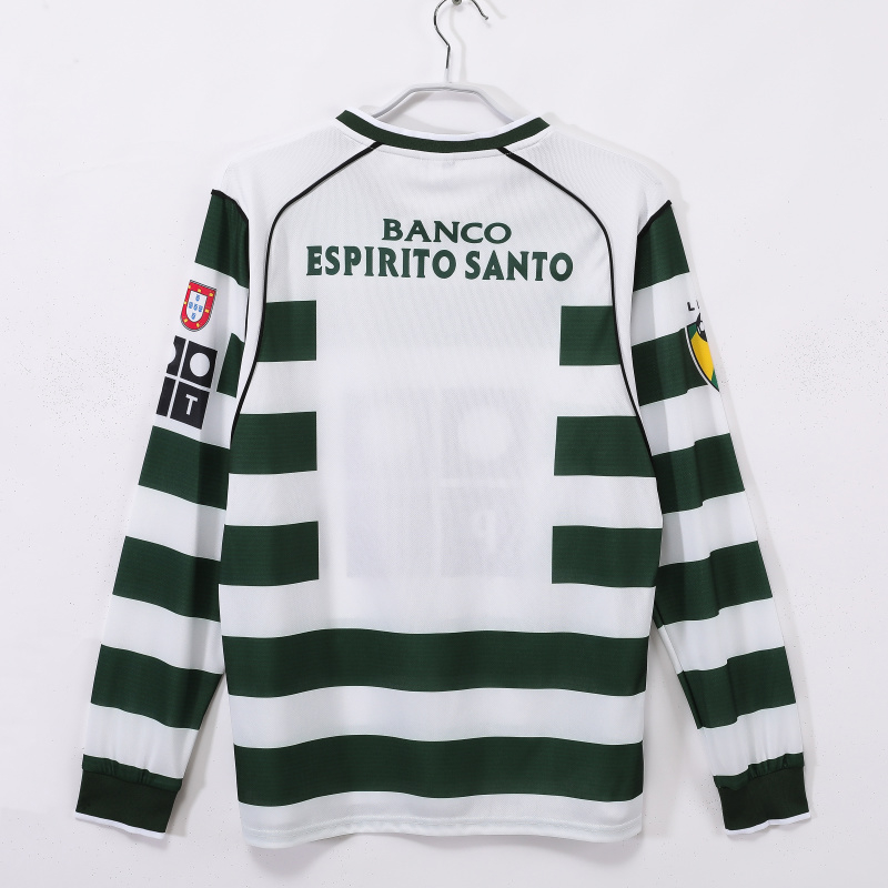 Áo đấu sân nhà của Sporting Lisbon mùa 2001/03 là một mẫu áo mang đậm tính truyền thống và lịch sử. Với các sọc dọc xanh và trắng, Áo Bóng Đá Retro này nổi bật với cổ áo polo màu trắng và logo CLB được thêu chắc chắn. Thiết kế dài tay mang đến phong cách cổ điển, lịch lãm.